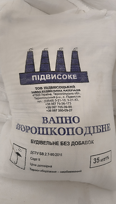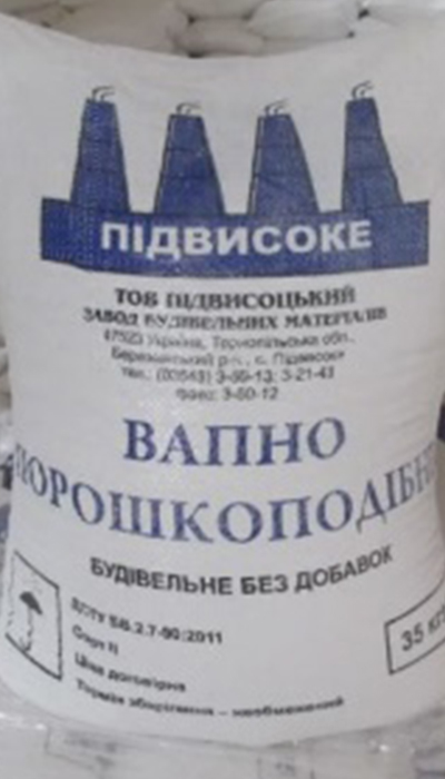 Наступна товарна позиція Вапно будівельне порошкоподібне негашене фасоване по 25 кг I та ІІ сорту ще розробляється, фото додамо.